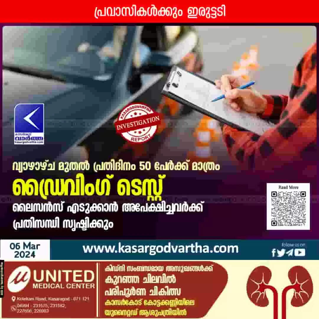 Keywords: News, Top-Headlines, Kasargod, Kasaragod-News, Kerala, Kerala-News, Driving test for only 50 people from Thursday.