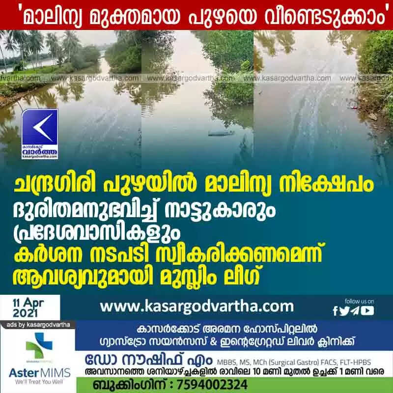 ചന്ദ്രഗിരി പുഴയിൽ മാലിന്യ നിക്ഷേപം: ദുരിതമനുഭവിച്ച് നാട്ടുകാരും പ്രദേശവാസികളും: കർശന നടപടി സ്വീകരിക്കണമെന്നാവശ്യവുമായി മുസ്ലിം ലീഗ്