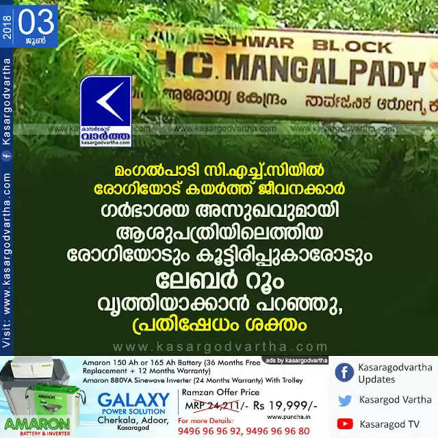 Keywords: Kasaragod, Kerala, news, Uppala, Top-Headlines, Mangalpady, Employees Bandy patient in Mangalpady CHC