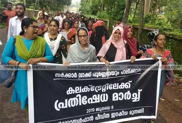 മൂന്ന് മാസത്തിനുള്ളില് നഷ്ടപരിഹാരം നല്കണമെന്ന സുപ്രീം കോടതി ഉത്തരവ് കേരള സര്ക്കാര് നടപ്പിലാക്കാത്തതിലും ഒത്തുതീര്പ്പിലെ വ്യവസ്ഥകള് അട്ടിമറിക്കുന്നതിലും അമ്മമാരുടെ മാര്ച്ചില് പ്രതിഷേധമിരമ്പി. ജൂണ് 25 മുതല് ജൂലൈ ഒമ്പത് വരെ എന്ഡോസള്ഫാന് ദുരിതബാധിതരെ കണ്ടെത്തുന്നതിനു വേണ്ടിയുള്ള പ്രത്യേക മെഡിക്കല് ക്യാമ്പ് മന്ത്രി ചെയര്മാനായുള്ള സെല് യോഗം തീരുമാനിച്ചെങ്കിലും ഭിന്നശേഷിക്കാര്ക്ക് മാത്രമായി ചുരുക്കിയതിലും മാര്ച്ചില് പ്രതിഷേധമുയര്ന്നു. മുനീസ അമ്പലത്തറ, നാരായണന് പേരിയ, പി പി കെ പൊതുവാള്, കെ കൊട്ടന്, സുബൈര് പടുപ്പ്, പ്രേമചന്ദ്രന് ചോമ്പാല, കെ ചന്ദ്രാവതി, മോഹനന് മാങ്ങാട്, പി കൃഷ്ണന്, ഷാഫി സുഹരി എന്നിവര് സംസാരിച്ചു. അബ്ദുല് ഖാദര് ചട്ടഞ്ചാല് സ്വാഗതവും ഗോവിന്ദന് കയ്യൂര് നന്ദിയും പറഞ്ഞു.