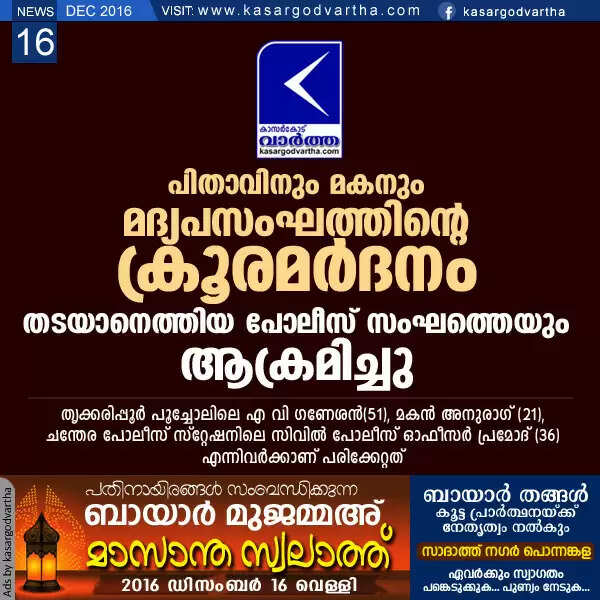 Keywords: Trikaripur, kasaragod, Top-Headlines, Police, Attack, Injured, Kerala, Father and son assaulted