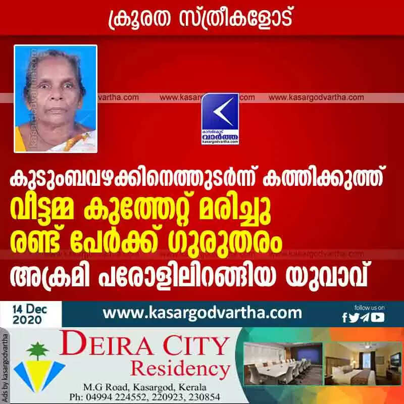 Keywords: Kerala, News, Payyannur, Stabbed, House-wife, Police, Case, Accused, Top-Headlines, Death, Following family quarrel, Housewife Killed, two seriously injured.