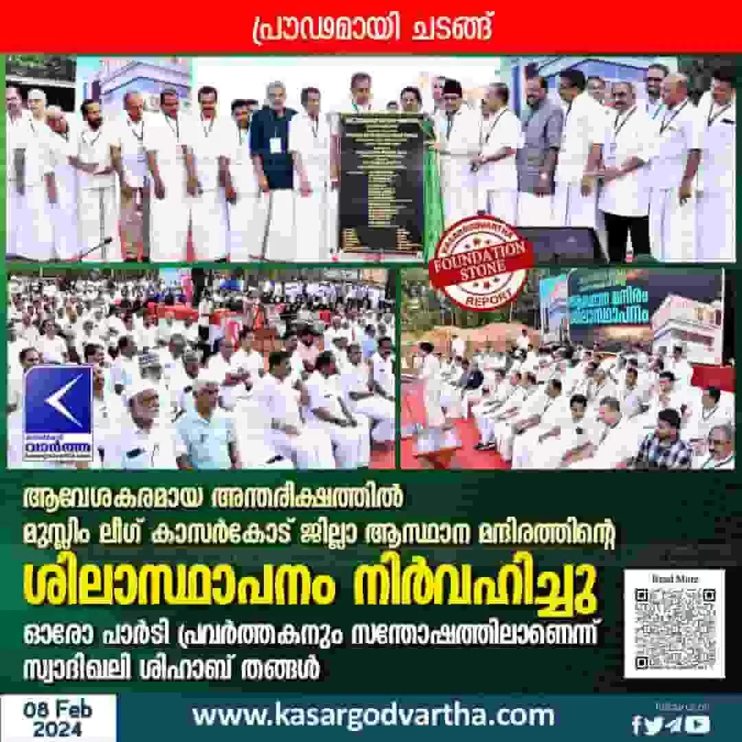 IUML headquarters | ആവേശകരമായ അന്തരീക്ഷത്തിൽ മുസ്ലിം ലീഗ് കാസർകോട് ജില്ലാ ആസ്ഥാന മന്ദിരത്തിന്റെ ശിലാസ്ഥാപനം നിർവഹിച്ചു; ഓരോ പാർടി പ്രവർത്തകനും സന്തോഷത്തിലാണെന്ന് സ്വാദിഖലി ശിഹാബ് തങ്ങൾ