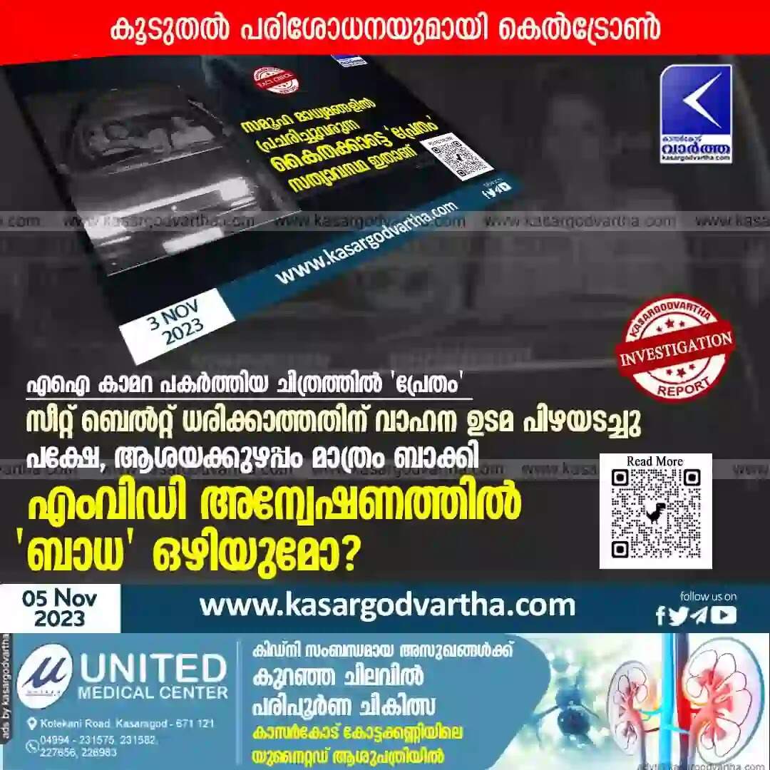 Investigation | എഐ കാമറ പകര്ത്തിയ ചിത്രത്തില് 'പ്രേതം': സീറ്റ് ബെല്റ്റ് ധരിക്കാത്തതിന് വാഹന ഉടമ പിഴയടച്ചു; പക്ഷേ, ആശയക്കുഴപ്പം മാത്രം ബാക്കി; എംവിഡി അന്വേഷണത്തില് ബാധ ഒഴിയുമോ?