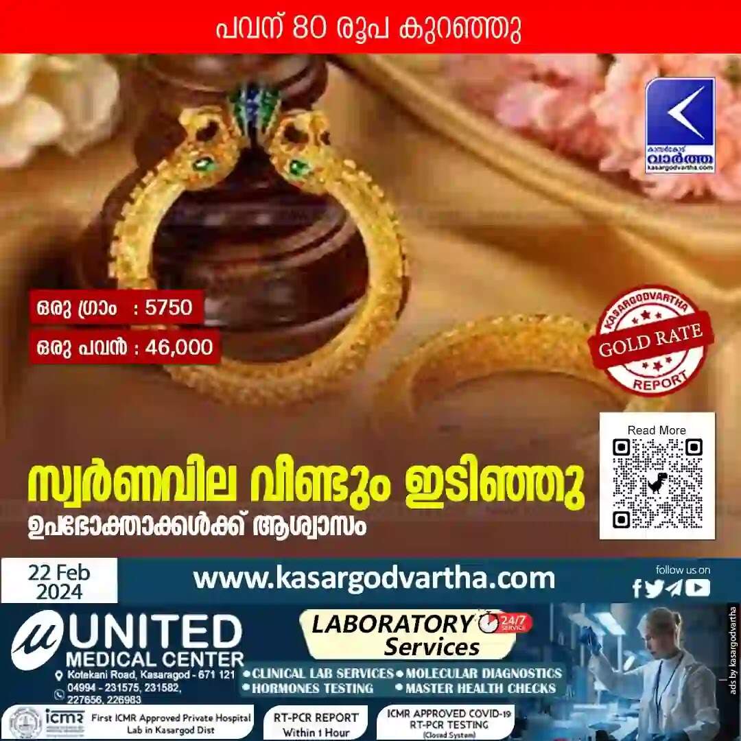 Gold Rate | വീണ്ടും ഇടിഞ്ഞു: ഉപഭോക്താക്കള്ക്ക് ആശ്വാസം; സ്വര്ണവില പവന് 80 രൂപ കുറഞ്ഞു