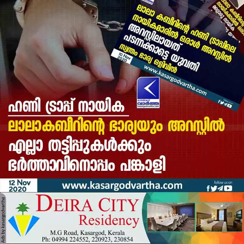 ഹണി ട്രാപ്പ് നായിക: ലാലാകബീറിന്റെ ഭാര്യയും അറസ്റ്റില്; എല്ലാ തട്ടിപ്പുകള്ക്കും ഭര്ത്താവിനൊപ്പം പങ്കാളി
