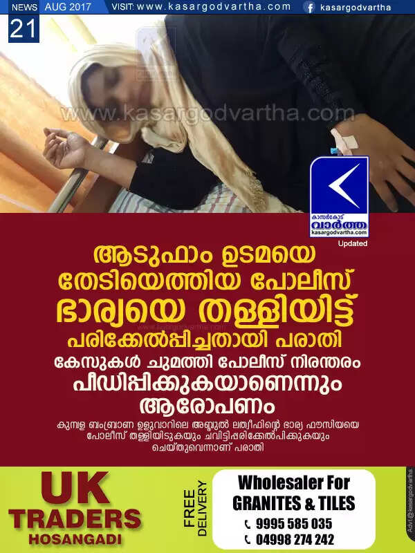 Keywords: Kasaragod, Kerala, news, Kumbala, Top-Headlines, complaint, Assault, Police, case, House wife assaulted by police, complaint lodged