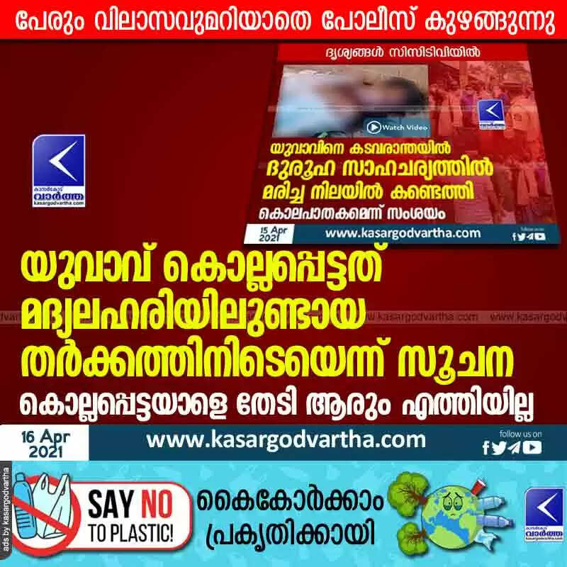 യുവാവ് കൊല്ലപ്പെട്ടത് മദ്യലഹരിയിലുണ്ടായ തർക്കത്തിനിടെയെന്ന് സൂചന; കൊല്ലപ്പെട്ടയാളെ തേടി ആരും എത്തിയില്ല; പേരും വിലാസവുമറിയാതെ പൊലീസ് കുഴങ്ങുന്നു