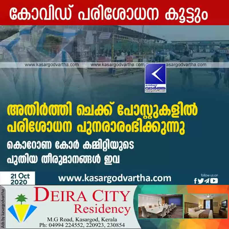 അതിര്ത്തി ചെക്ക് പോസ്റ്റുകളില് പരിശോധന പുനരാരംഭിക്കുന്നു ; കോവിഡ് പരിശോധന കൂട്ടും; കൊറോണ കോര് കമ്മിറ്റിയുടെ പുതിയ തീരുമാനങ്ങൾ ഇവ