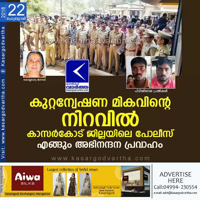 Keywords: Kasaragod, Kerala, news, Kanhangad, Police, District, Top-Headlines, Janaki murder case proved; Congrats for Investigation Team < !- START disable copy paste -->
