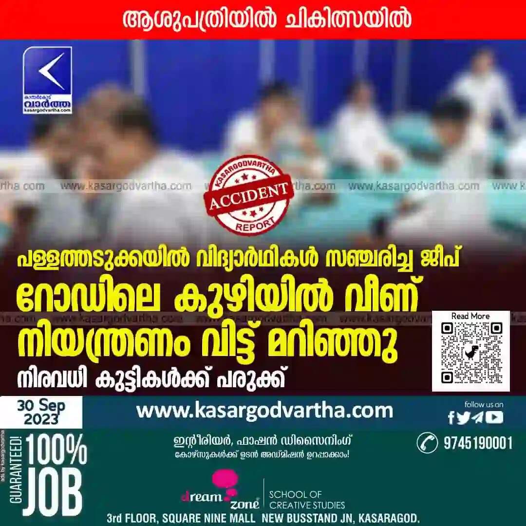 Keywords: Accident, Badiadka, Pallathadka, Kerala News, Malayalam News, Kasaragod News, Accident News, Jeep fell into pothole on road and overturned out of control; Many children injured.