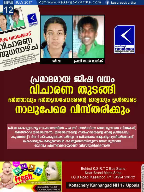 Keywords: Kasaragod, Murder Case, Case, Court, Robbery Attempt, Police, Investigation, Accuse, Arrest, CBI, Complaint, Jisha murder case; Trial begins.