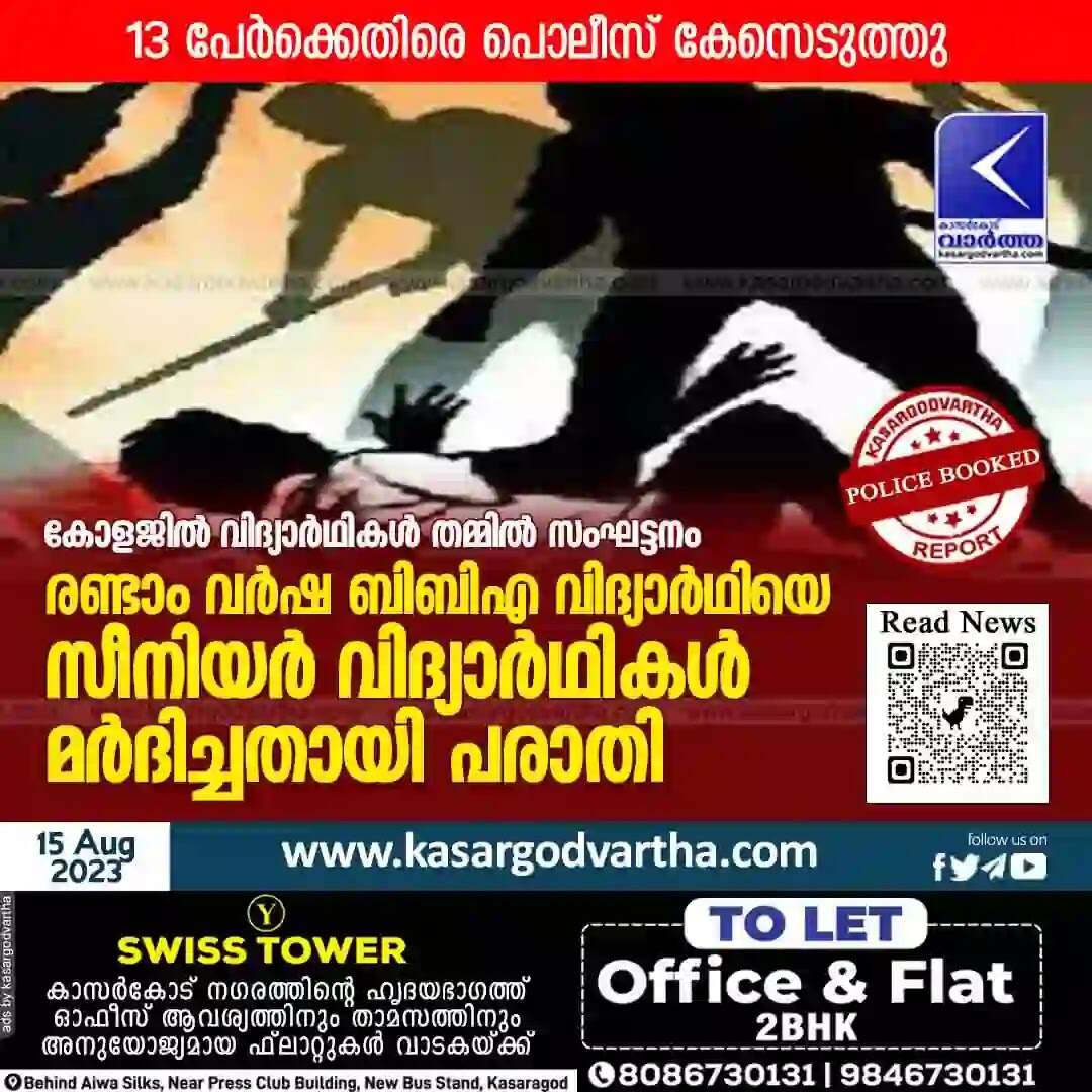 Police Booked | കോളജിൽ വിദ്യാർഥികൾ തമ്മിൽ സംഘട്ടനം; രണ്ടാം വർഷ ബിബിഎ വിദ്യാർഥിയെ സീനിയർ വിദ്യാർഥികൾ മർദിച്ചതായി പരാതി; 13 പേർക്കെതിരെ പൊലീസ് കേസെടുത്തു