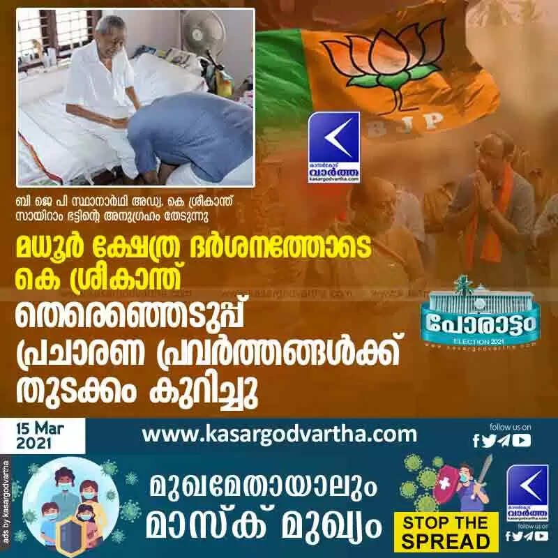 Keywords:  Kerala, News, Kasaragod, Top-Headlines, Madhur, Temple, Adv.Srikanth, Election, Niyamasabha-Election-2021, BJP, K Srikanth started his election campaign with a visit to Madhur Temple.
