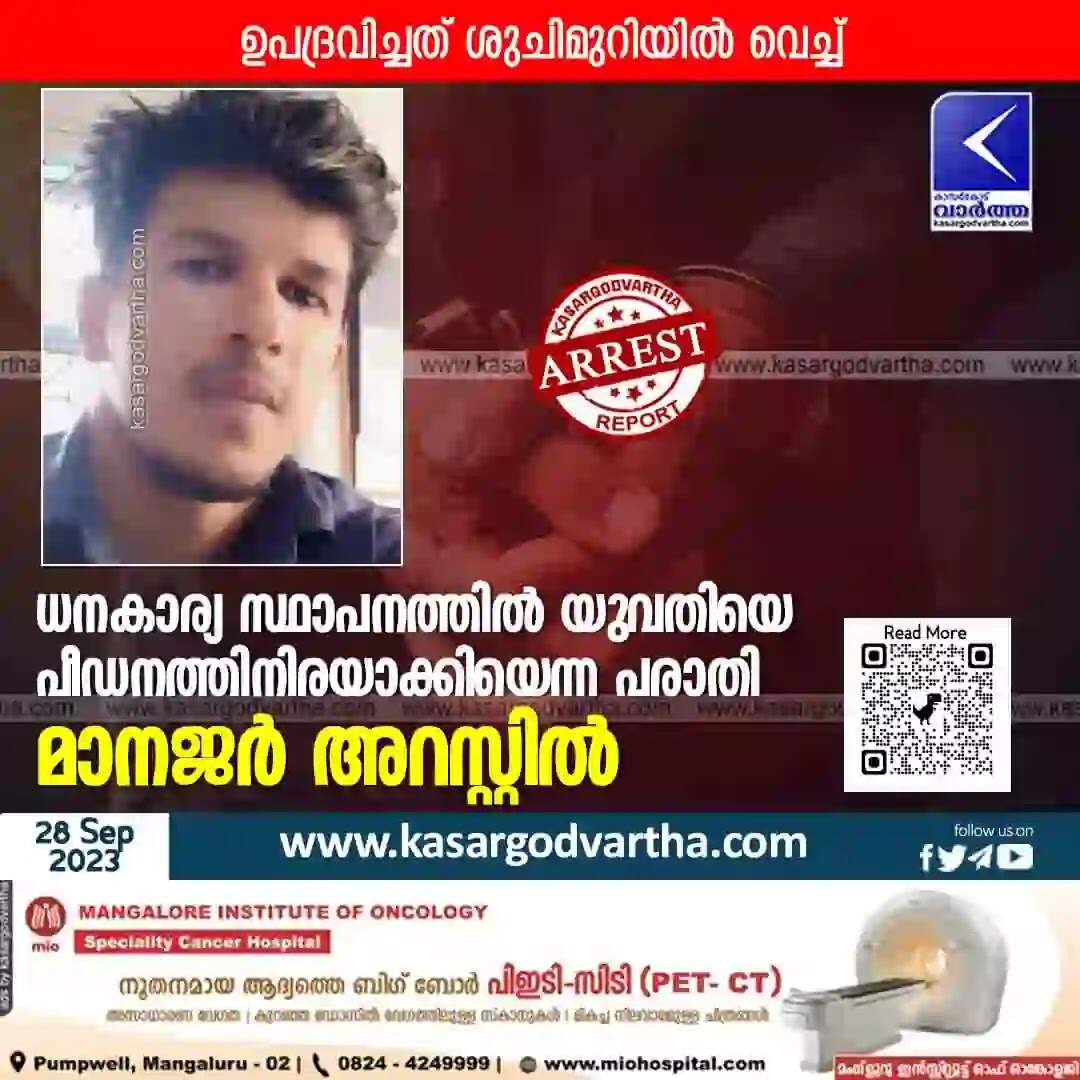 Arrested | ധനകാര്യ സ്ഥാപനത്തില് യുവതിയെ പീഡനത്തിനിരയാക്കിയെന്ന പരാതി; മാനജര് അറസ്റ്റില്
