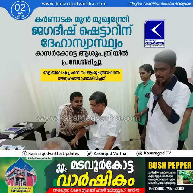 Keywords:  Kasaragod, Kerala, news, Top-Headlines, hospital, Deli, Karnataka Ex chief minister Jagadish Shettar hospitalized in Kasaragod