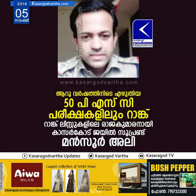 Keywords: Kasaragod, PSC, Rank, News, Top-Headlines, Jail Superintend, Kasaragod Jail Superintend Mansoor Ali got rank in 50 PSC Exams
