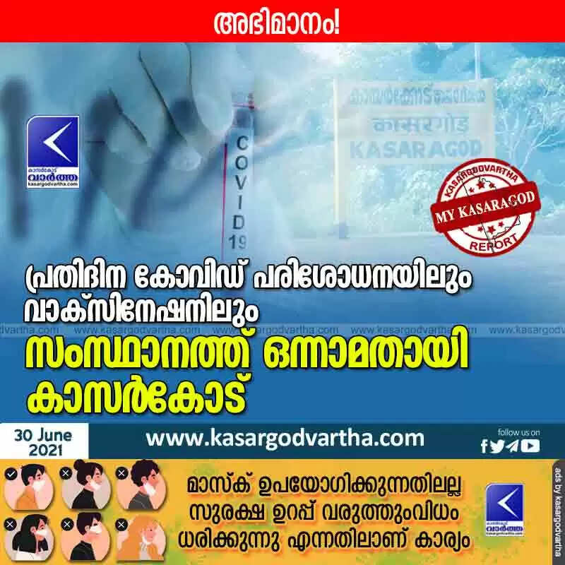 Keywords:  Kerala, News, Kasaragod, COVID-19, Corona, Top-Headlines, Test, Report, Vaccinations, Health-Department, Kasaragod ranks first in the state in daily COVID testing and vaccination.