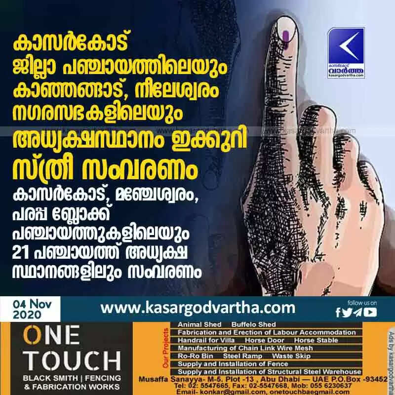 Keywords: Kerala, News, Kasaragod, Kanhangad, Neeleswaram, Election, Panchayath, Municipality, Woman, Top-Headlines, Caste, Kasargod District Panchayat, Kanhangad and Neeleswaram Municipal Councils Reservation in Kasargod.