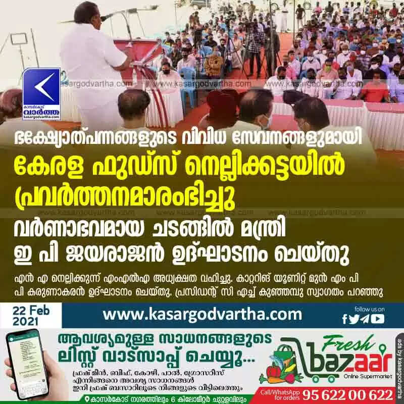 ഭക്ഷ്യോത്പന്നങ്ങളുടെ വിവിധ സേവനങ്ങളുമായി കേരള ഫുഡ്സ് നെല്ലിക്കട്ടയിൽ പ്രവർത്തനമാരംഭിച്ചു; വർണാഭവമായ ചടങ്ങിൽ മന്ത്രി ഇ പി ജയരാജൻ ഉദ്ഘാടനം ചെയ്തു