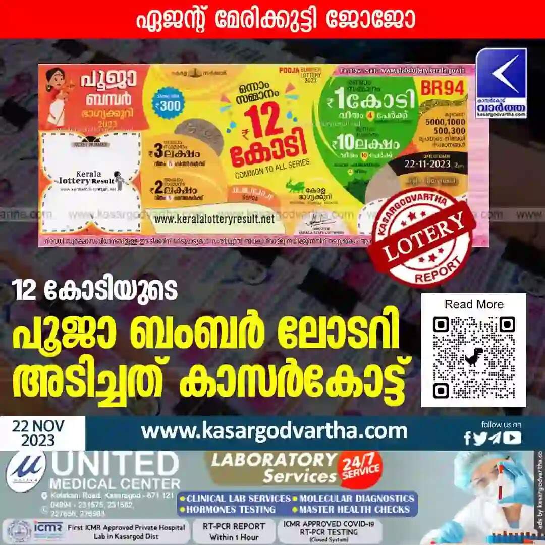 Keywords: Kerala, Pooja Bumper, Lottery, Results, Prize, Hosangady, Ticket, Draw, Kerala Pooja Bumper Lottery results declared, first prize Rs 12 crore.
