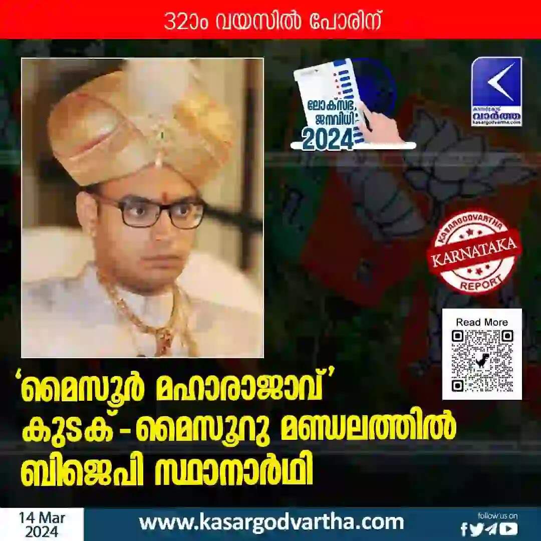 Yaduveer Wadiyar | 'മൈസൂർ മഹാരാജാവ്' കുടക് - മൈസൂറു മണ്ഡലത്തിൽ ബിജെപി സ്ഥാനാർഥി