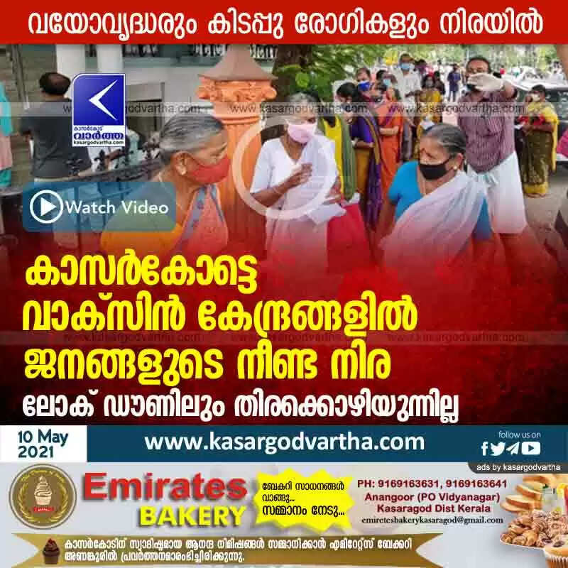 കാസർകോട്ടെ വാക്സിൻ കേന്ദ്രങ്ങളിൽ ജനങ്ങളുടെ നീണ്ട നിര; ലോക് ഡൗണിലും തിരക്കൊഴിയുന്നില്ല