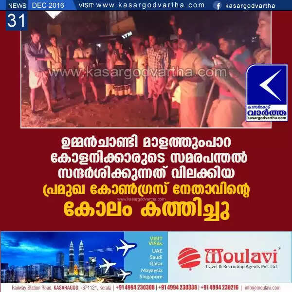 ഉമ്മന്ചാണ്ടി മാളത്തുംപാറ കോളനിക്കാരുടെ സമരപന്തല് സന്ദര്ശിക്കുന്നത് വിലക്കിയ പ്രമുഖ കോണ്ഗ്രസ് നേതാവിന്റെ കോലം കത്തിച്ചു