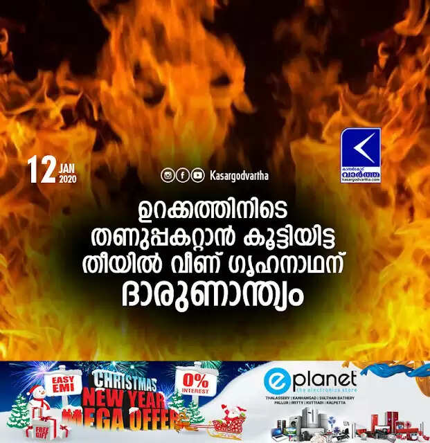 ഉറക്കത്തിനിടെ തണുപ്പകറ്റാന്‍ കൂട്ടിയിട്ട തീയില്‍ വീണ് ഗൃഹനാഥന് ദാരുണാന്ത്യം