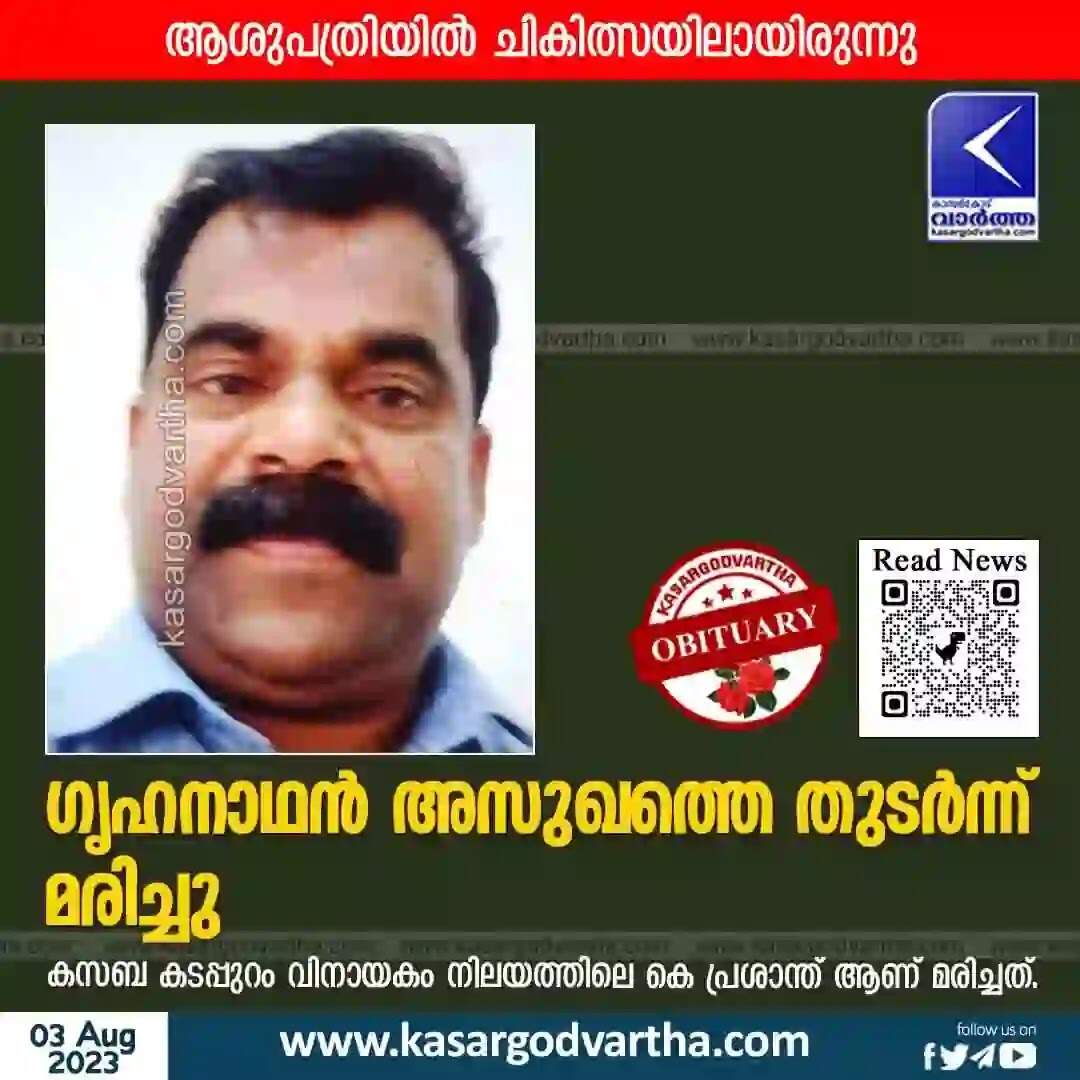 Obituary | ഗൃഹനാഥൻ അസുഖത്തെ തുടർന്ന് മരിച്ചു