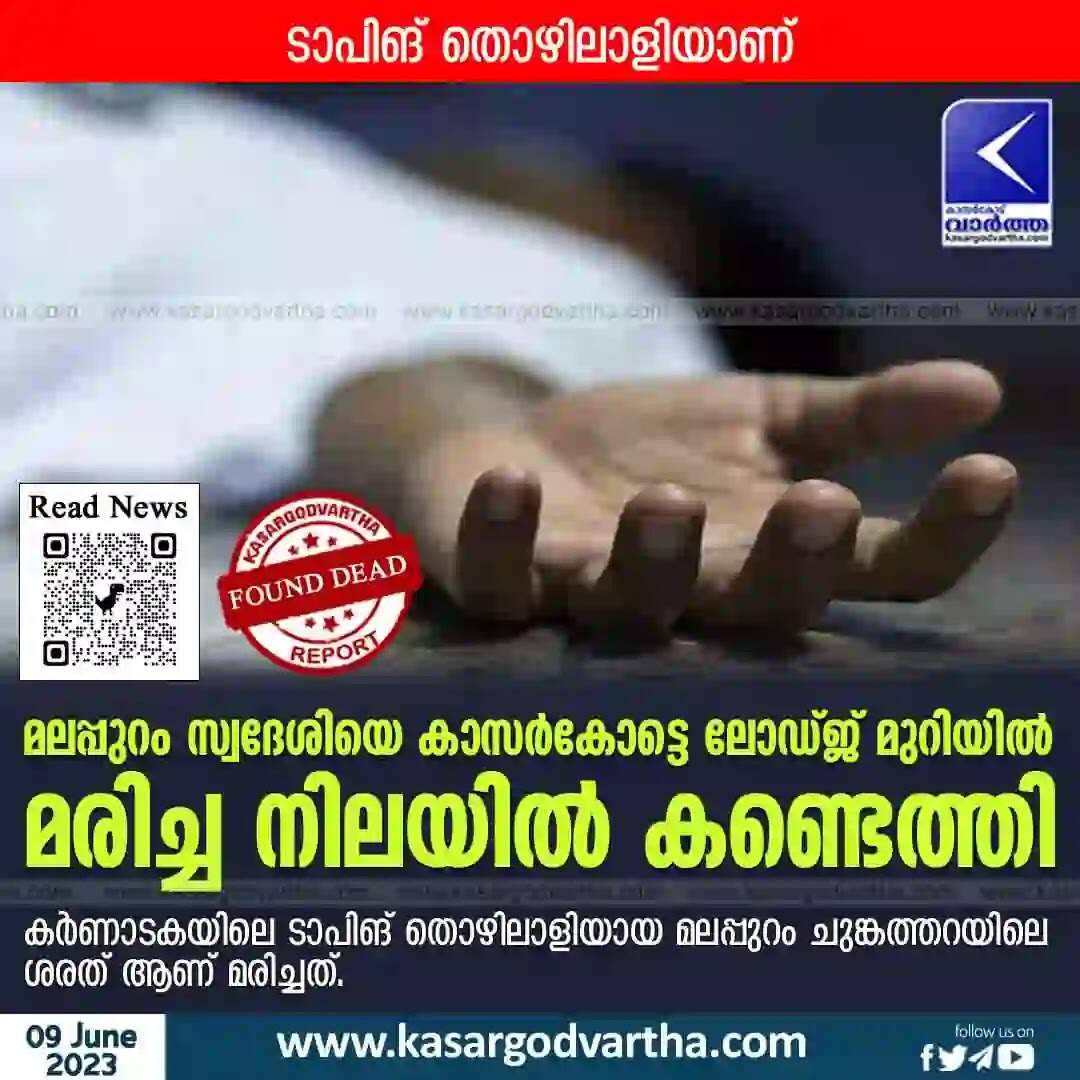 കാസർകോട്: (www.kasargodvartha.com) മലപ്പുറം സ്വദേശിയെ കാസർകോട്ടെ ലോഡ്ജ് മുറിയിൽ മരിച്ച നിലയിൽ കണ്ടെത്തി. കർണാടകയിലെ ടാപിങ് തൊഴിലാളിയായ മലപ്പുറം ചുങ്കത്തറയിലെ ശരത് (36) ആണ് മരിച്ചത്.