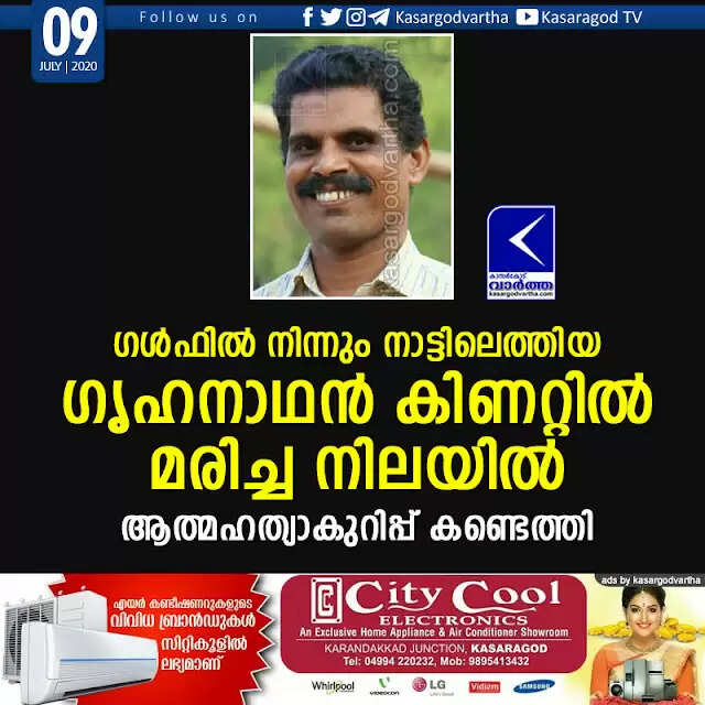 ഗള്‍ഫില്‍ നിന്നും നാട്ടിലെത്തിയ ഗൃഹനാഥന്‍ കിണറ്റില്‍ മരിച്ച നിലയില്‍; ആത്മഹത്യാകുറിപ്പ് കണ്ടെത്തി