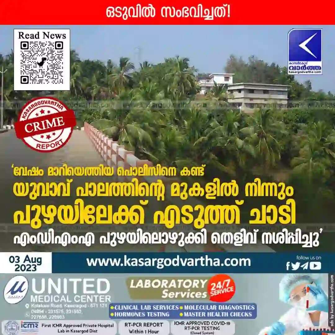 Keywords: News, Kasaragod, Kerala, MDMA, Accused, Police, Bridge, River, Escape, Man jumps in river to escape police.