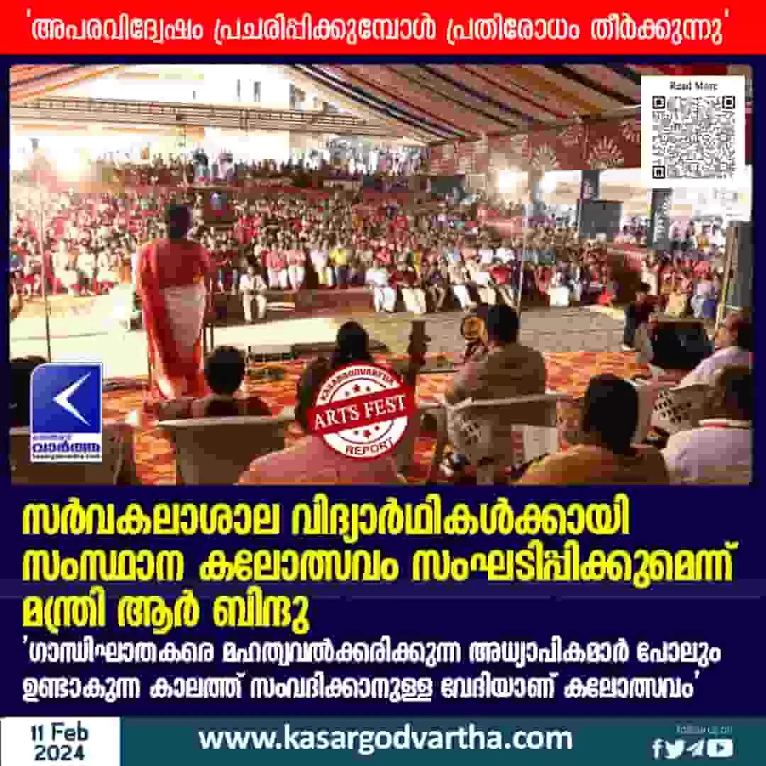 Keywords : News, Top-Headlines, Malayalam-News, Kasargod, Kasaragod-News, Kerala, Kerala-News, Minister R Bindu said that state arts festival will be organized for university students.