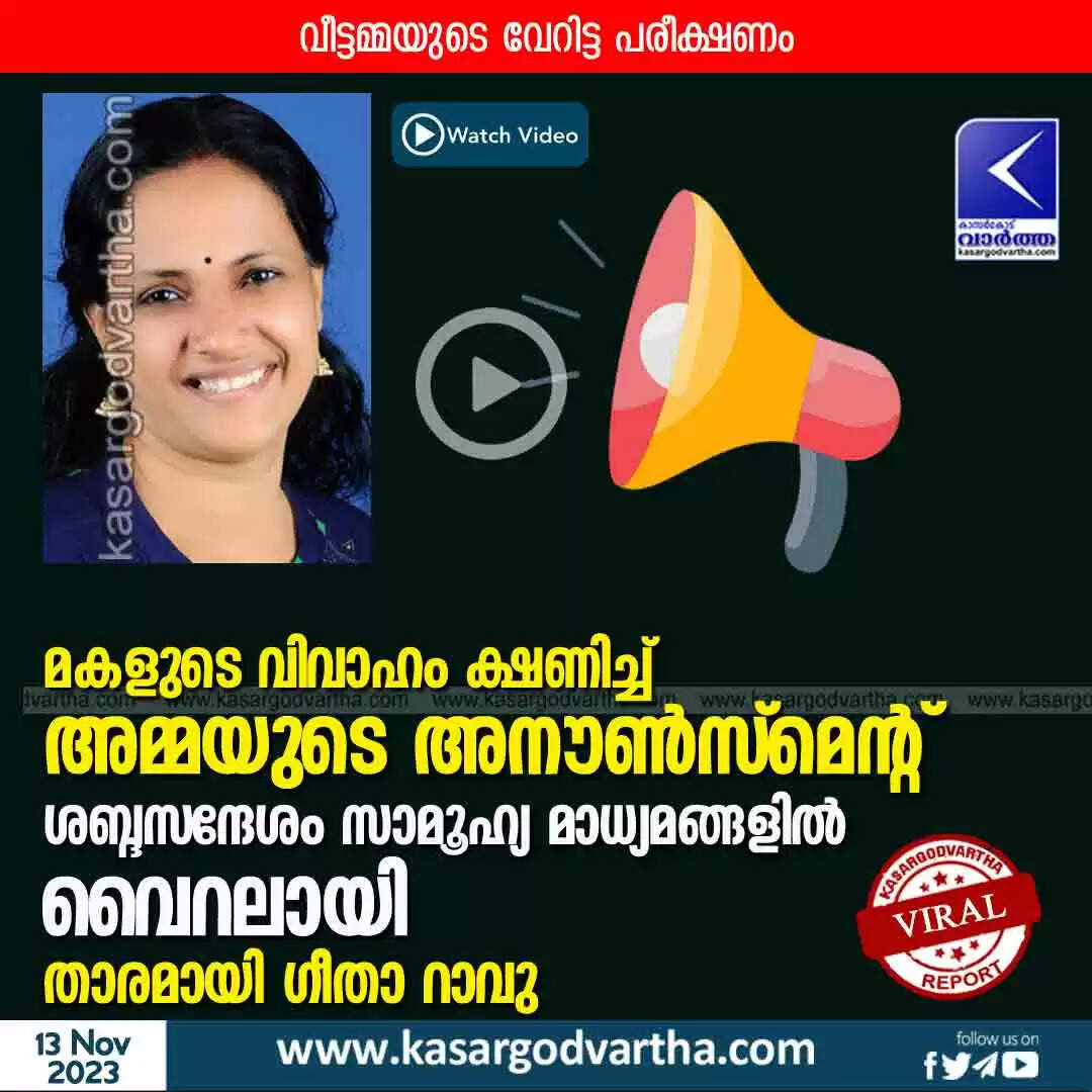 Announcement | മകളുടെ വിവാഹം ക്ഷണിച്ച് അമ്മയുടെ അനൗൺസ്മെന്റ്; ശബ്ദസന്ദേശം സാമൂഹ്യ മാധ്യമങ്ങളിൽ വൈറലായി; താരമായി ഗീതാ റാവു