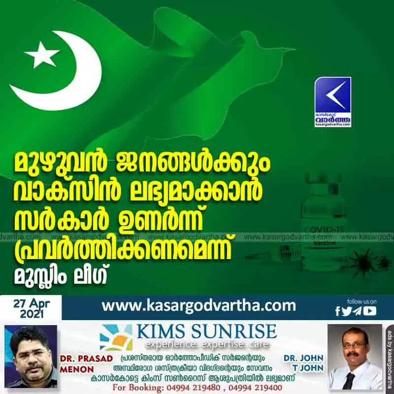 Keywords: Kerala, News, Kasaragod, Top-Headlines, COVID-19, Corona, Vaccinations, Muslim-league, Muslim League urges the government to be vigilant in making the vaccine available to the entire population.