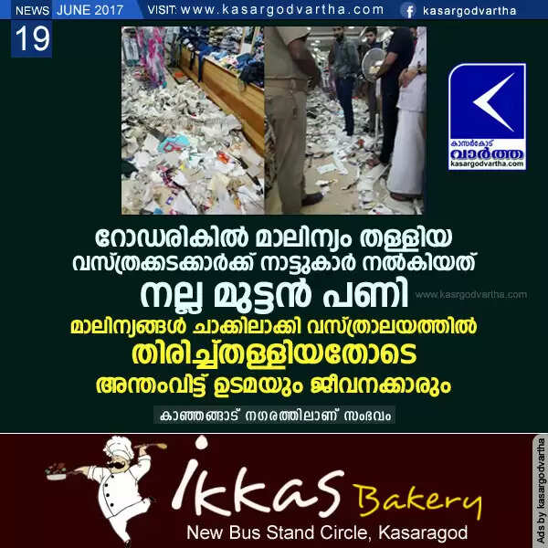Keywords : Kanhangad, Top-Headlines, News, Waste, Shop, Natives, Kasaragod, Natives dump back garage to textile shop.