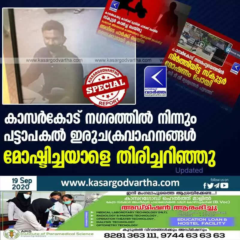 കാസര്കോട് നഗരത്തില് നിന്നും പട്ടാപകല് ഇരുചക്രവാഹനങ്ങൾ മോഷ്ടിച്ചയാളെ തിരിച്ചറിഞ്ഞു