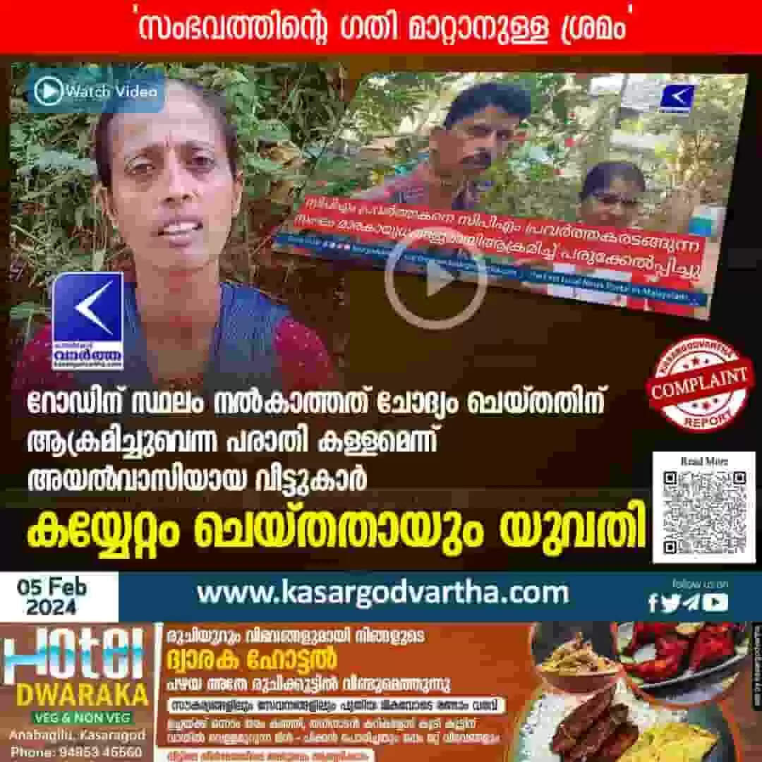 Keywords: News, News-Malayalam-News, Kasargod, Kasaragod-News, Kerala, Kerala-News, Neighboring family claims that complaint of assault for questioning non-grant of road space is false propaganda.