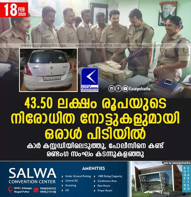 43.50 ലക്ഷം രൂപയുടെ നിരോധിത നോട്ടുകളുമായി ഒരാള് പിടിയില്; കാര് കസ്റ്റഡിയിലെടുത്തു, പോലീസിനെ കണ്ട് രണ്ടംഗ സംഘം കടന്നുകളഞ്ഞു