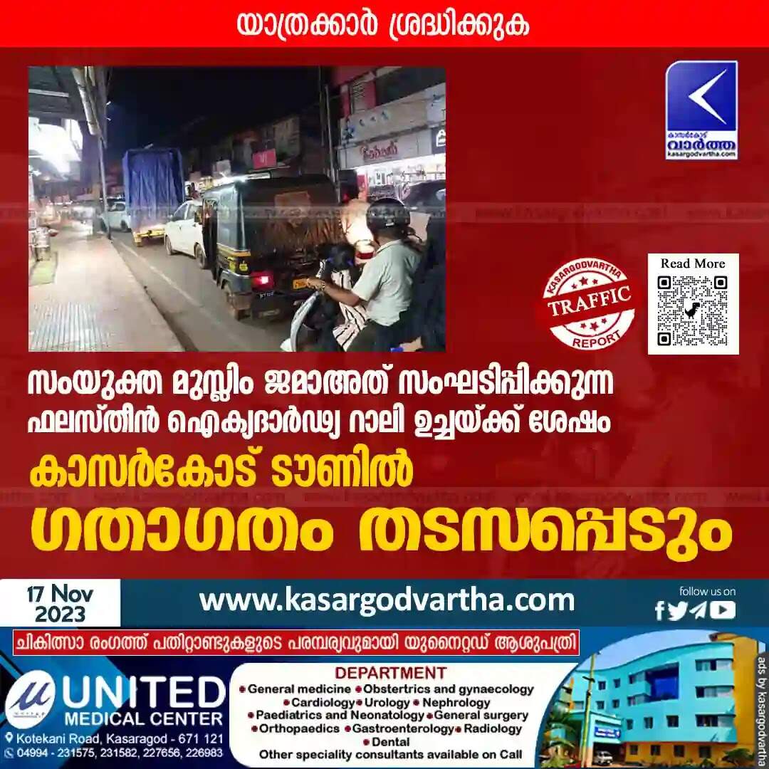 Traffic | യാത്രക്കാർ ശ്രദ്ധിക്കുക: സംയുക്ത മുസ്ലിം ജമാഅത് സംഘടിപ്പിക്കുന്ന ഫലസ്തീൻ ഐക്യദാർഢ്യ റാലി ഉച്ചയ്ക്ക് ശേഷം; കാസർകോട് ടൗണിൽ ഗതാഗതം തടസപ്പെടും