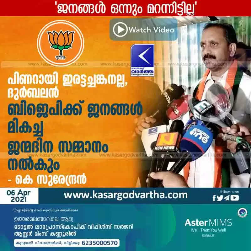 Keywords: Kasaragod, Kerala, News, BJP, K.Surendran, LDF, Pinarayi-Vijayan, Top-Headlines, Pinarayi is a weak man; People will give best birthday gift to BJP - K Surendran.