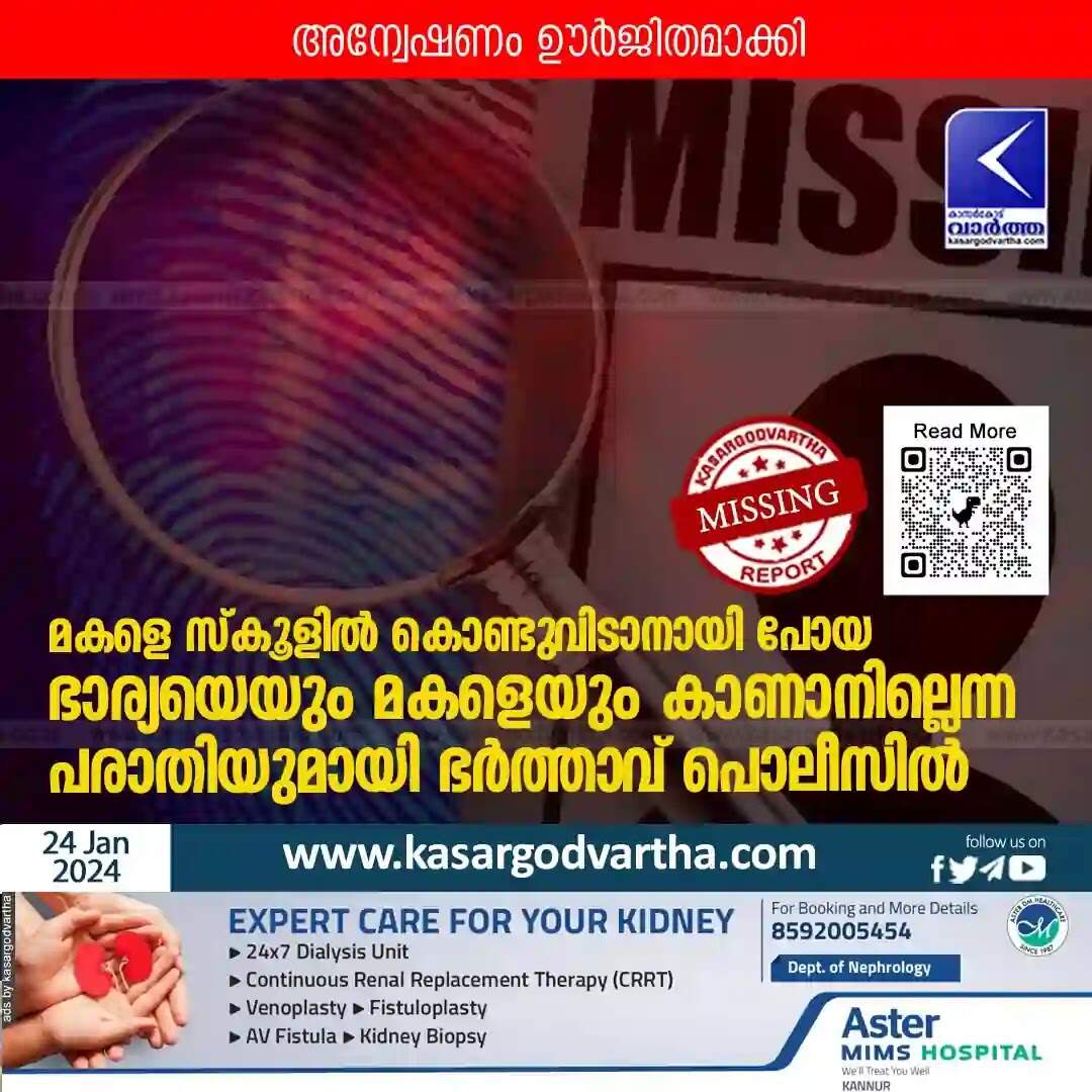 Missing | മകളെ സ്കൂളില് കൊണ്ടുവിടാനായി പോയ ഭാര്യയെയും മകളെയും കാണാനില്ലെന്ന പരാതിയുമായി ഭര്ത്താവ് പൊലീസില്!