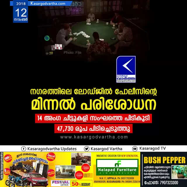 Keywords: Kasaragod, Kerala, news, Gambling, Top-Headlines, Police Raid in Lodge; Gambling gang busted