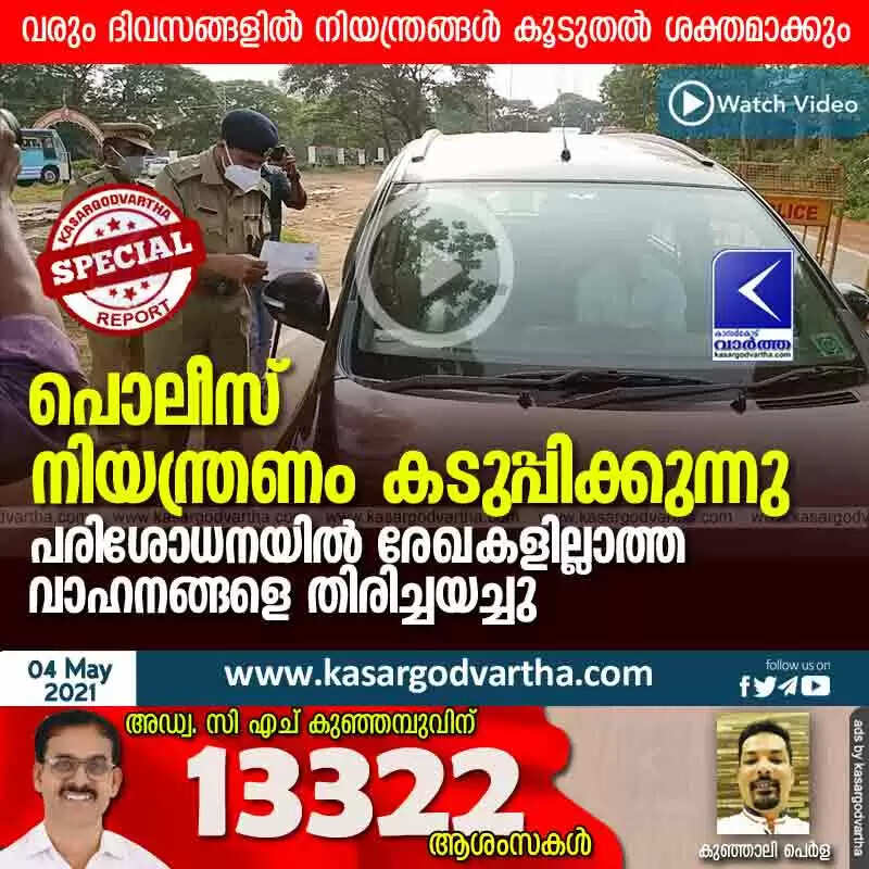 Keywords:  Kerala, News, Kasaragod, Top-Headlines, COVID-19, Corona, Test, Police, Vehicle, Police tighten control; Vehicles without documents were returned.