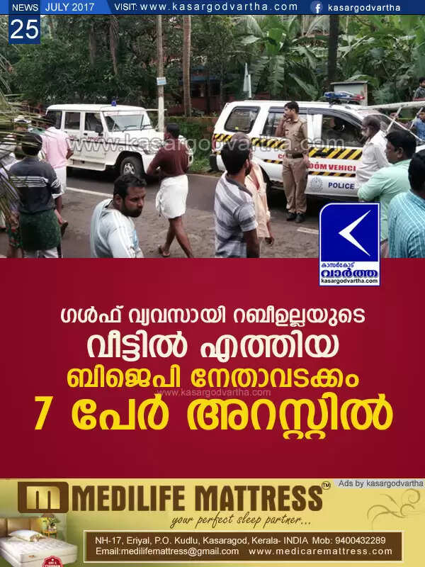 ഗള്ഫ് വ്യവസായി റബീഉല്ലയുടെ വീട്ടില് എത്തിയ ബിജെപി നേതാവടക്കം 7 പേര് അറസ്റ്റില്