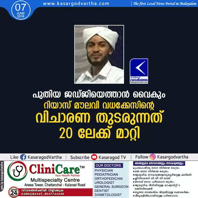 Keywords:  Kasaragod, Kerala, news, Murder-case, Murder, Top-Headlines, Riyas moulavi murder case trial will restart on 20th
