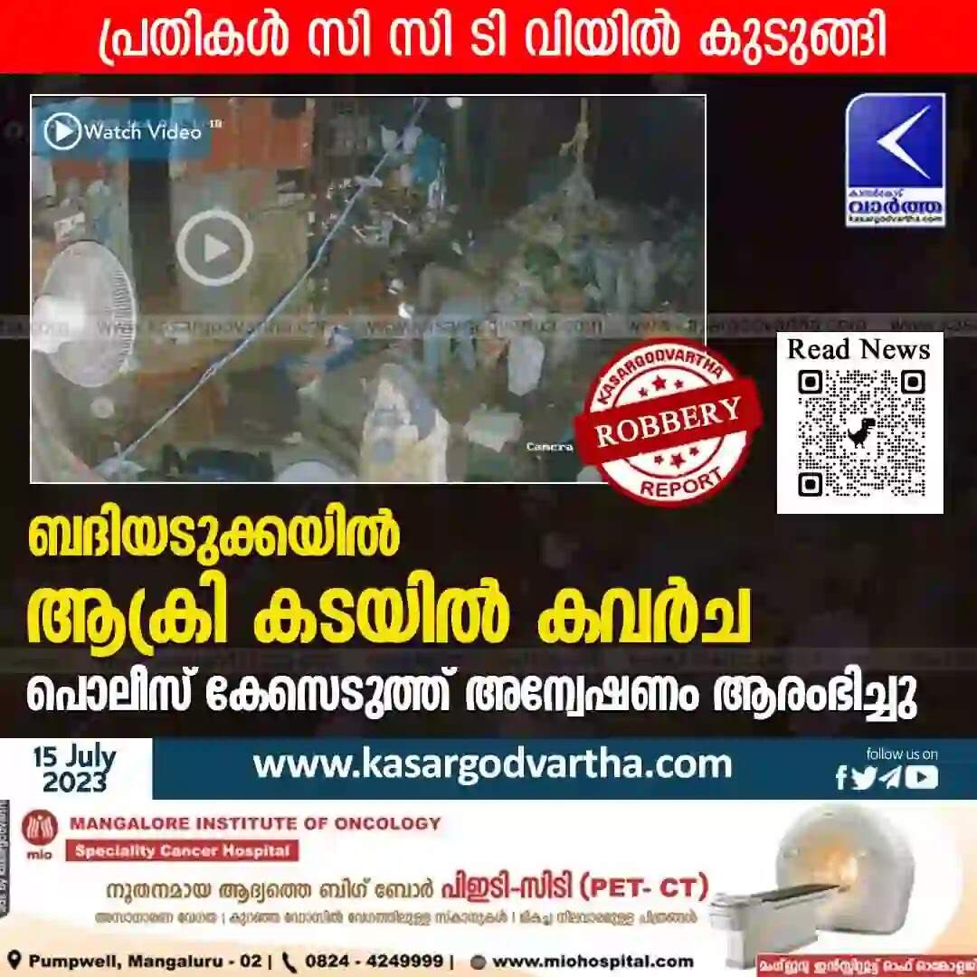 Robbery | ബദിയടുക്കയിൽ ആക്രി കടയിൽ കവർച; പ്രതികൾ സി സി ടി വിയിൽ കുടുങ്ങി; പൊലീസ് കേസെടുത്ത് അന്വേഷണം ആരംഭിച്ചു