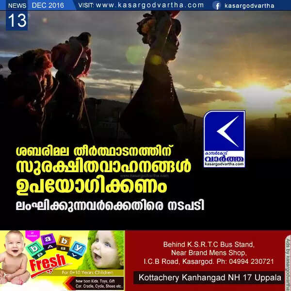 Keywords: Kasaragod, Kerala, Vehicles, Sabarimala, Sabarimala trip: use safety measures in vehicles