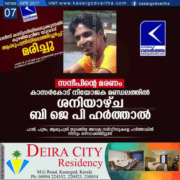 സന്ദീപിന്റെ മരണം: കാസര്കോട് നിയോജക മണ്ഡലത്തില് ശനിയാഴ്ച ബി ജെ പി ഹര്ത്താല്